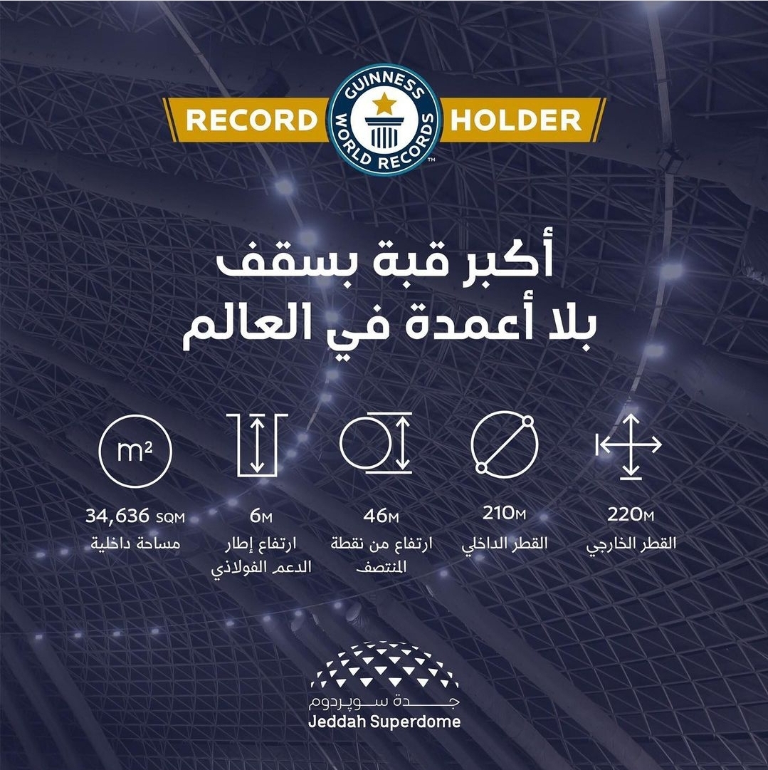 جدة سوبر دوم | أكبر قبة في العالم بلا أعمدة وقبة قائمة بذاتها | رقم قياسي في غينيس